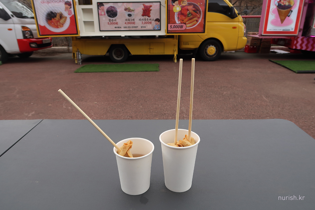 떡튀순도 한 그릇, 잘 안 보이지만 안에 떡볶이가 많이 들어 있다.