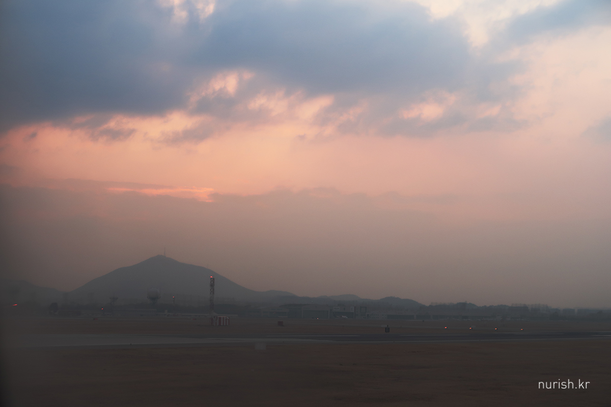다섯 시 퇴근하자마자 도보 15분 거리에 있는 공항철도 홍대입구역으로 가서 약 15분 지하철 타고 이동, 약 15분 걸어서 국내선 탑승구 도착, 여섯 시 반 비행기 여유롭게 탑승 완료. 공항철도 빠르긴 정말 빠르더라.
