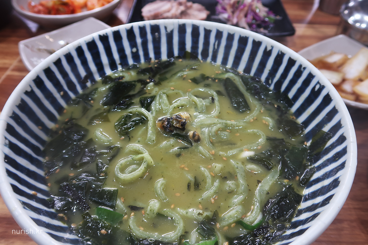 아침 식사는 도청 앞에 있는 식당에서 보말칼국수와
