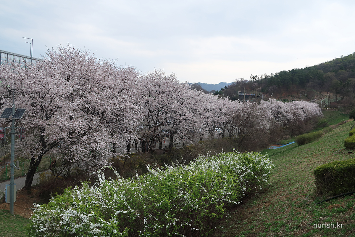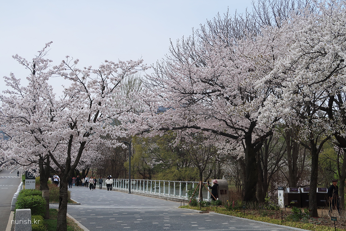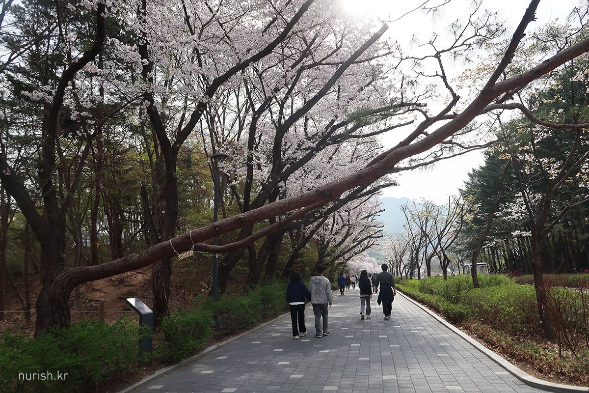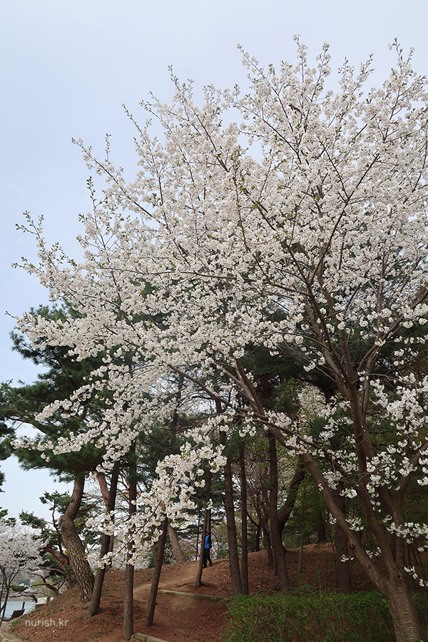 인사하는 소나무를 지나면 벚꽃 만발한 산책로 시작
