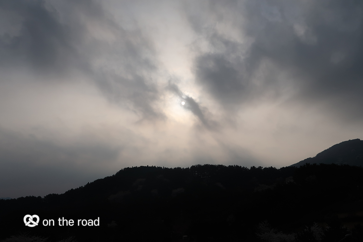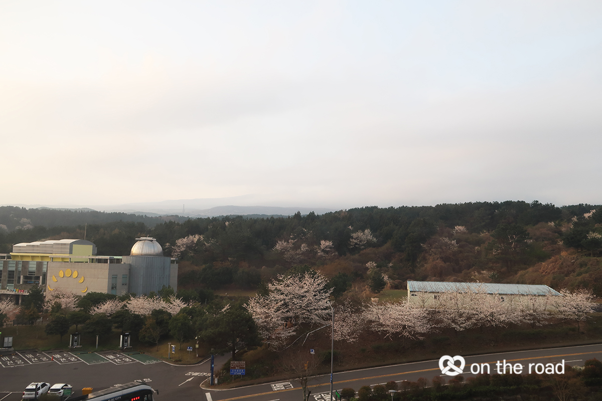 이른 아침, 구름이 껴서 한라산이 잘 보이지 않는다.