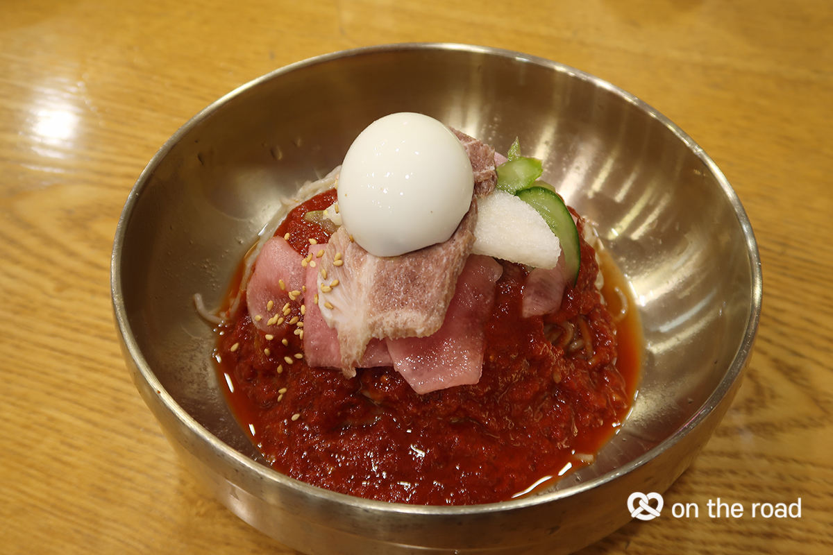콜드플레이 공연 전, 대화역에서 저녁 먹을 곳 찾다가 Y언니가 발견한 삼지연평양냉면전문점. 비빔냉면 먹었는데 간이 세지 않고 적당하니 맛있게 잘 먹었다.