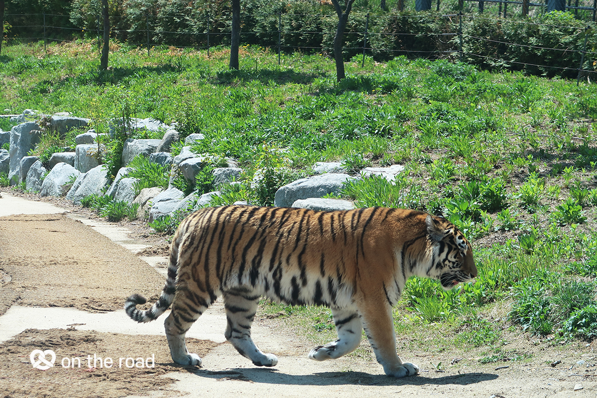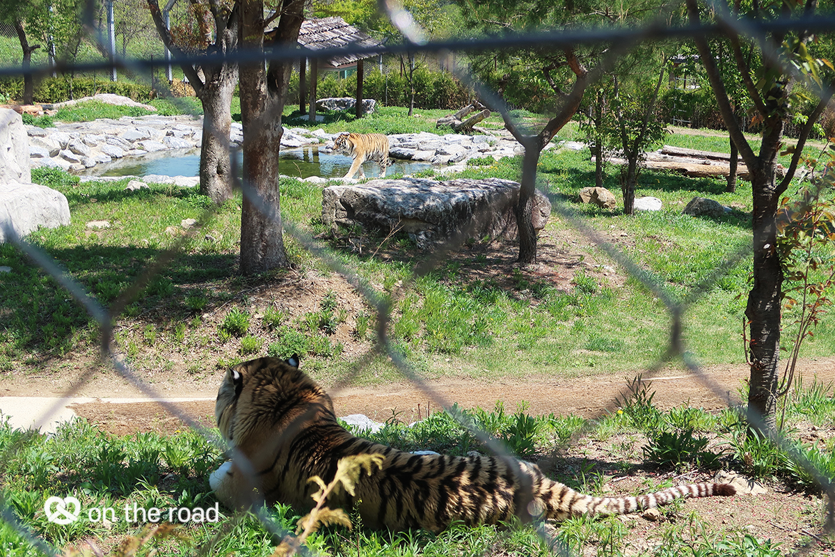 이렇게 가깝다고? 싶을 정도로 호랑이들이 철조망 근처로 잘 온다. 제법 오랜 시간 머물렀는데, 거대한 호랑이들 너무 귀여워서 하루 종일 관찰해도 안 질릴 것 같았다. 다만, 호랑이는 청각이 예민하니 조용히 관람해달라고 써 있건만, 호랑이의 관심을 끌겠다고 소리를 질러대는 어른들이 있어서 눈살이 조금 찌푸려졌다.