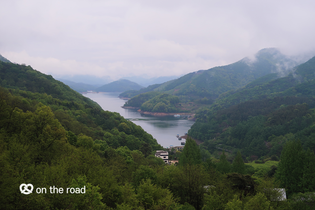 충주호에 위치한 카페 가는 길, 잠깐 들른 충주호 종댕이길안내소 주차장.