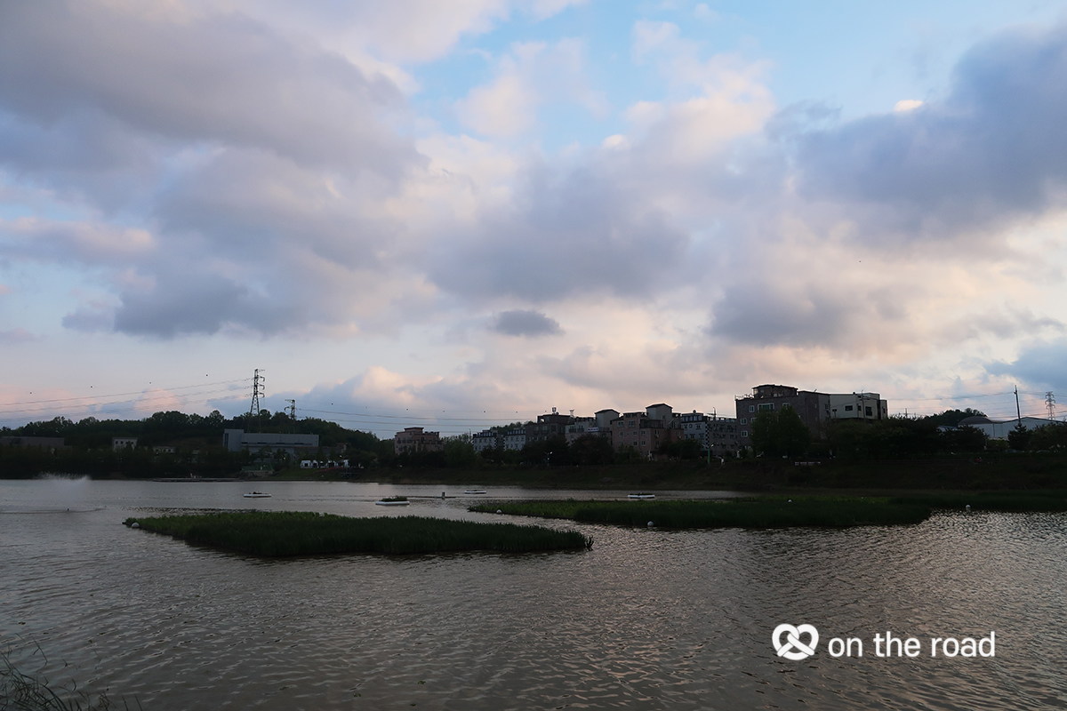 너무 배 불러서 호텔 앞에 있는 저수지 한 바퀴 돌았다.