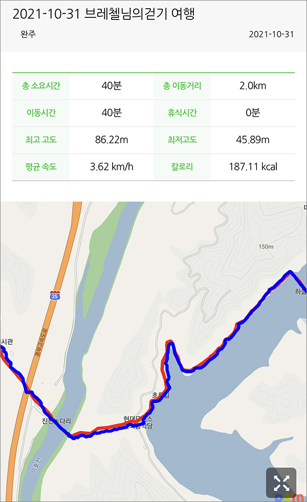 농다리에서 하늘다리까지 편도 40분 완주 완료!