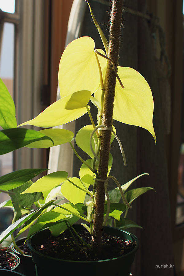 어째서인지 해 덜 드는 구석으로 옮기고 나서 잎 크기가 더 커지는 것 같은 느낌?