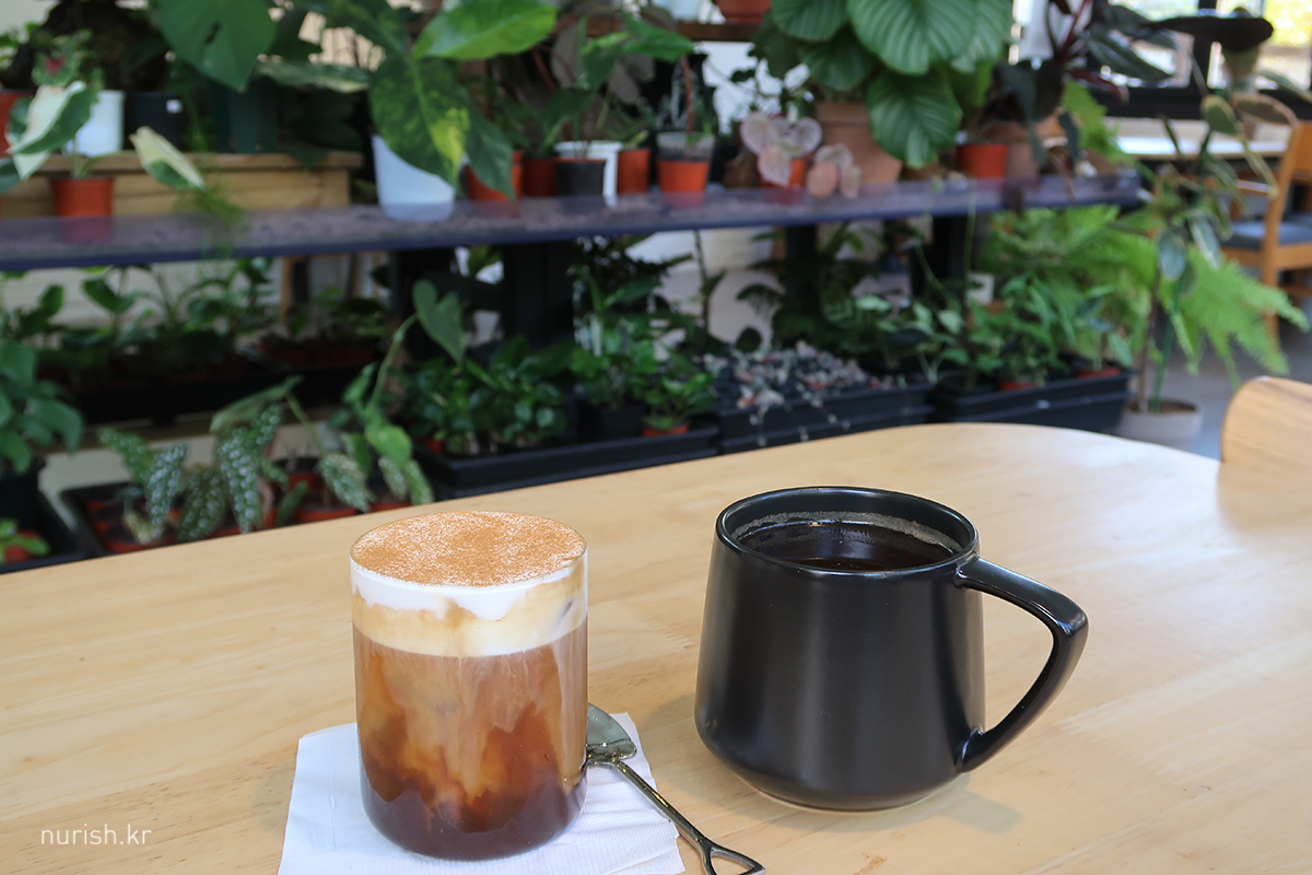 몇 주 전에 이고집만두 들렀을 때 지나가다가 본 식물 카페. 그땐 시간도 늦었고 서울 가기 바빠서 못 들렀는데 오늘은 여유가 좀 있으니까 커피 한 잔 마시고 간다. 조용하고 여유롭고, 싱그러운 초록이들과 행복한 시간 보낸다.