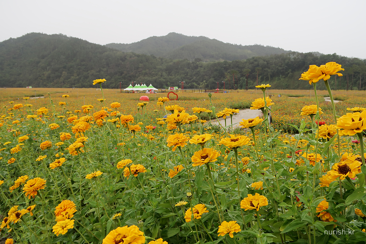 아침식사 하고 나오니 비가 그치는 듯하여서 급하게 체크아웃하고 백일홍을 또 보러 왔는데ㅋㅋㅋ 빗줄기는 다시 거세졌다.