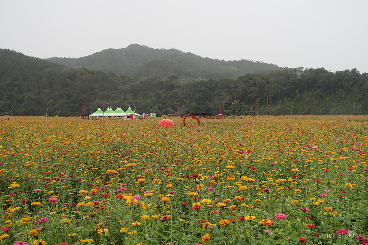아침식사 하고 나오니 비가 그치는 듯하여서 급하게 체크아웃하고 백일홍을 또 보러 왔는데ㅋㅋㅋ 빗줄기는 다시 거세졌다.