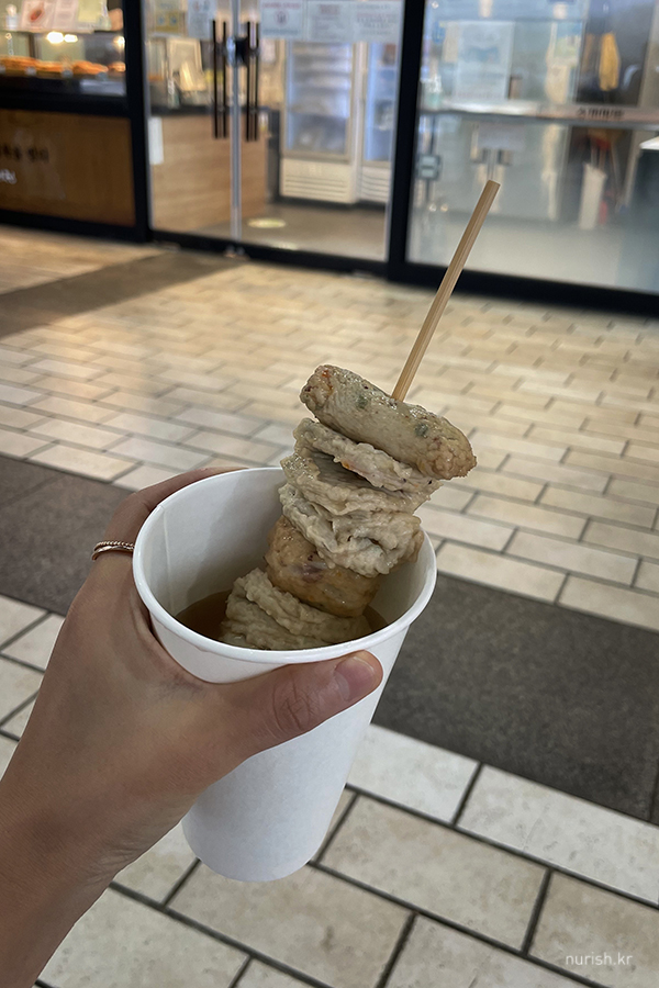 화장실 가기 위해 휴게소에 들렀는데 날이 쌀쌀하여 뜨끈한 어묵 한 입과 국물 한 모금