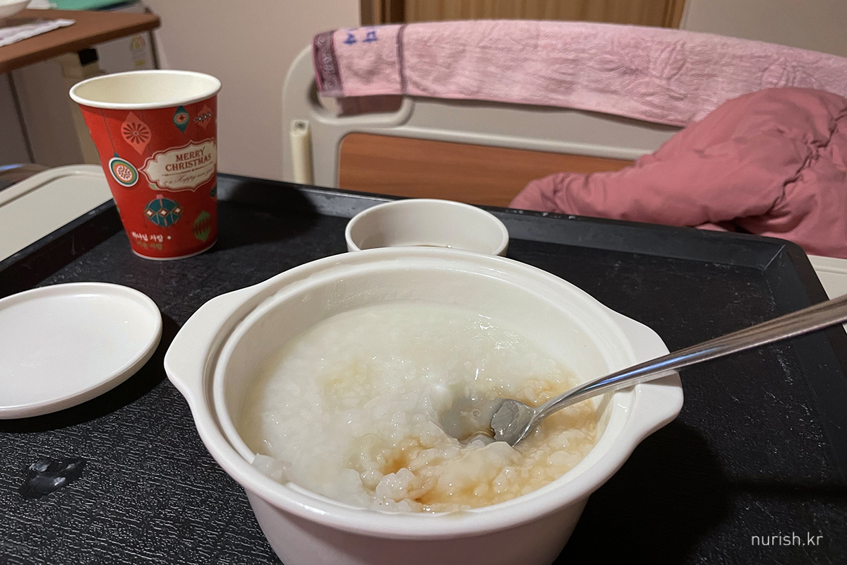 수술 후 첫 끼니는 흰죽에 간장 ㅠ.ㅠ