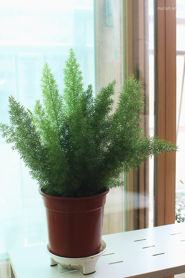 생각지 못한 인연으로 함께 살게 된 아스파라거스 메이리(asparagus meyeri). 여우 꼬리처럼 생겨서 여우 꼬리라는 별명이 있는데 너무 귀엽다. 곧 꽃도 펼 거 같고, 찾아보니까 빨간 열매도 맺힌다는데 기대된다.