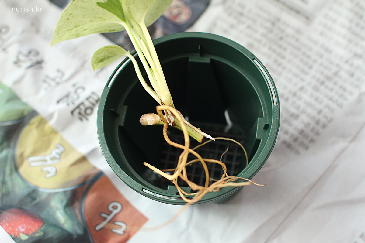 이 녀석도 분갈이 완료. 노란색으로 변해 버린 작은 잎은 꺼내 보니 줄기가 완전히 물렀더라. ㅠㅠ 저 하나 남은 녀석은 잘 살아남아 주기를. ㅠㅠ