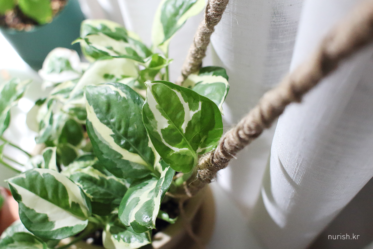 자주 들락날락하는 식물카페에서 공기뿌리에 투명 빨대를 대주면 공기뿌리를 흙으로 보내기도 쉽고 뿌리가 마르지도 않는다는 꿀팁을 보았다. 이것 때문에 투명 빨대를 새로 사기는 좀 그래서 22일 목요일 저녁, 집에 굴러다니던 초록색 빨대로 감싸주었다.