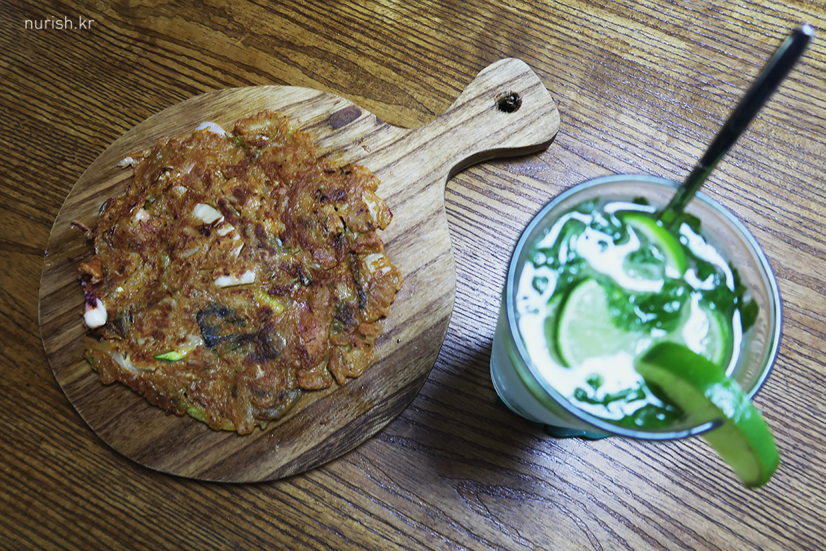 김치전에 모히또 한 잔...인데 ㅋㅋㅋ 초점은 김치부침개만 집중!