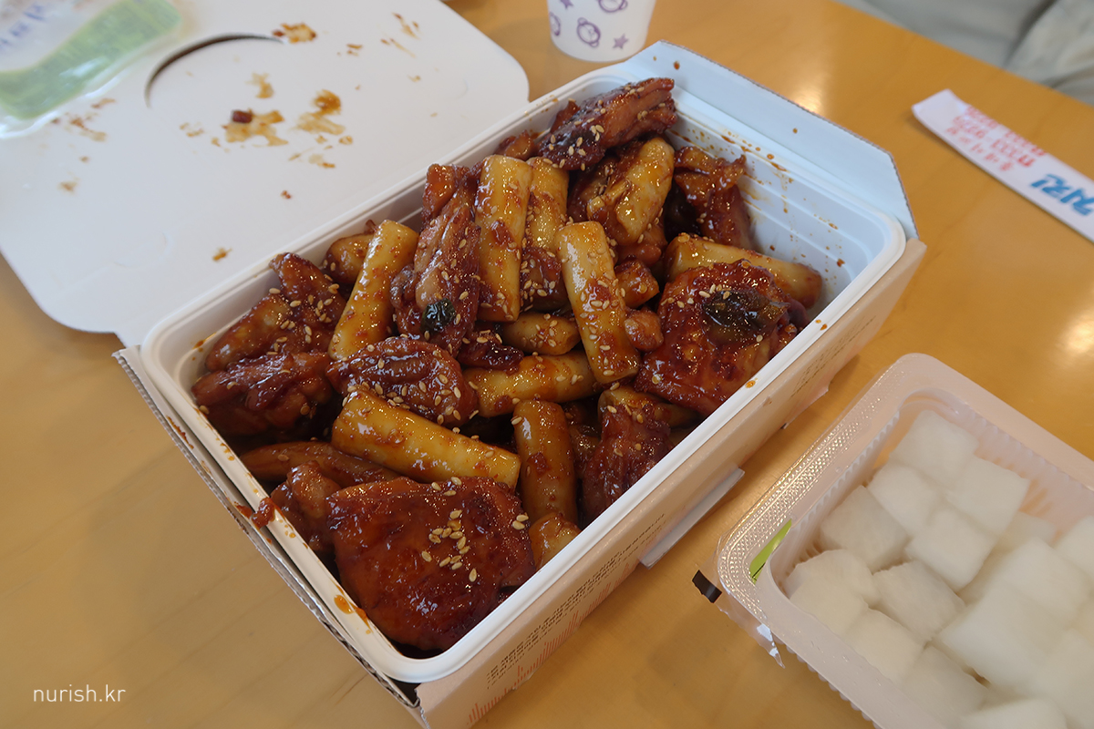 점심은 지코바 양념순살치킨+떡추가 배달
