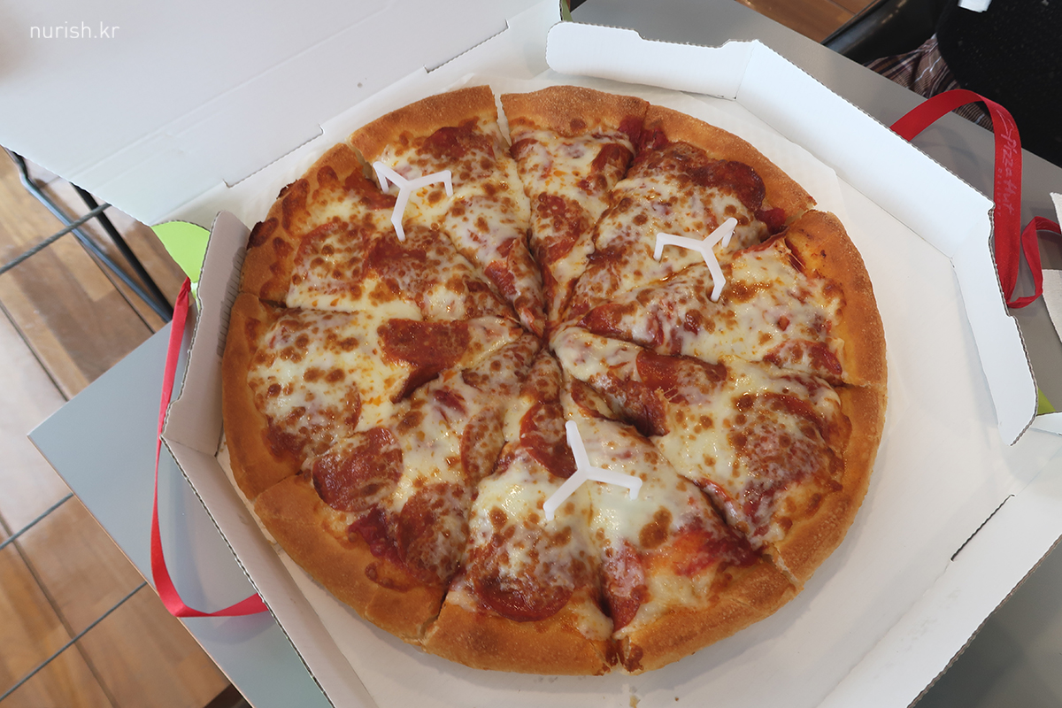 피자헛, 페퍼로니 팬피자, 모짜렐라치즈 추가, 도우 바삭하게