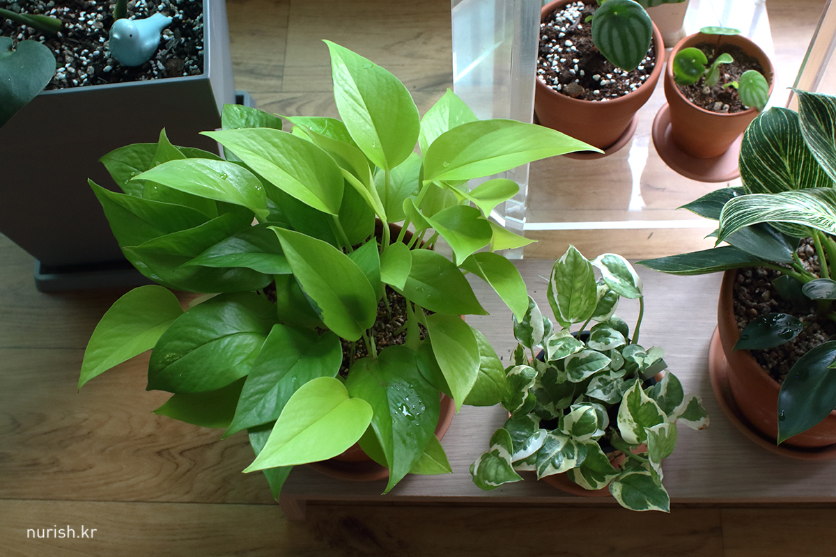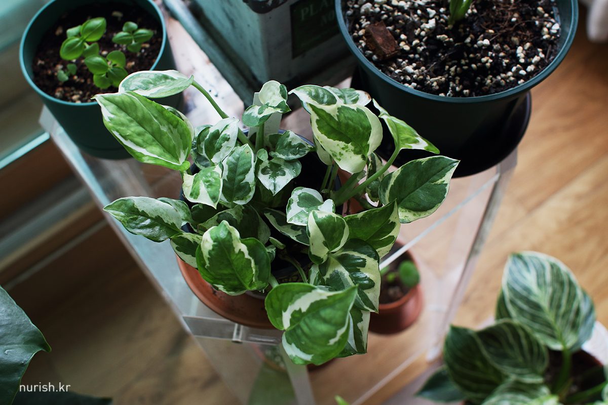 엄마가 파주 프로방스에 갔다가 사 온 엔조이 스킨답서스라고 알려진 에피프레넘 아우리움 엔조이(Epipremnum Aureum N'Joy ) 혹은 포토스 엔조이(Pothos N'Joy). 이름은 카나리라고 지었다. 즐겁게 노래하는 카나리.