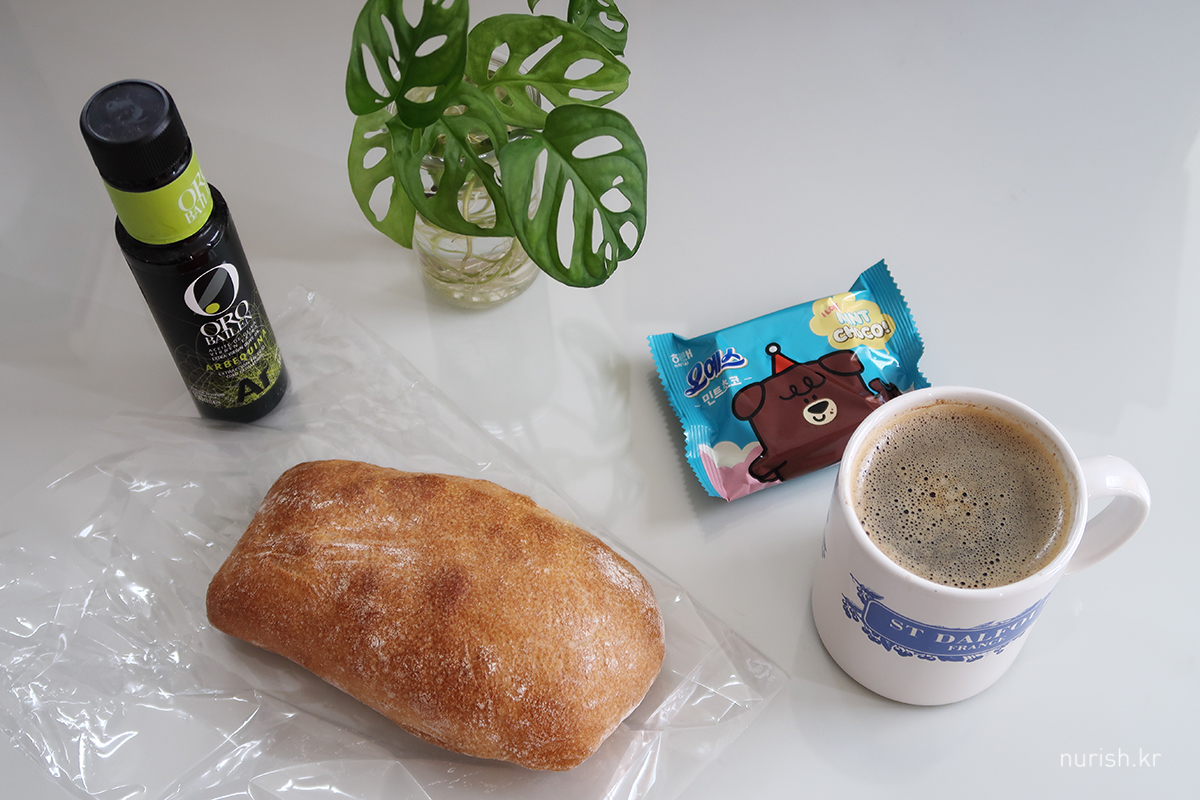 점심은 츄이구이브레드에서 사 온 치아바타랑 민트초코오예스