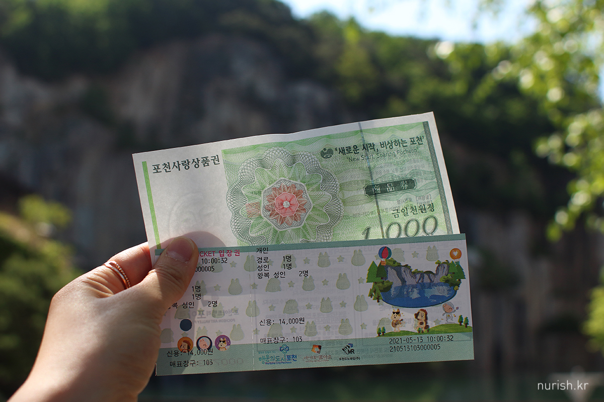 제값 주고 입장권을 사면 포천사랑상품권 천 원짜리를 준다.