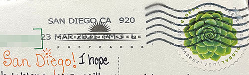 미국 샌디에이고에서 날아온 캘리포니아 주 지도 엽서! 샌디에이고는 제일 남쪽에 있다.