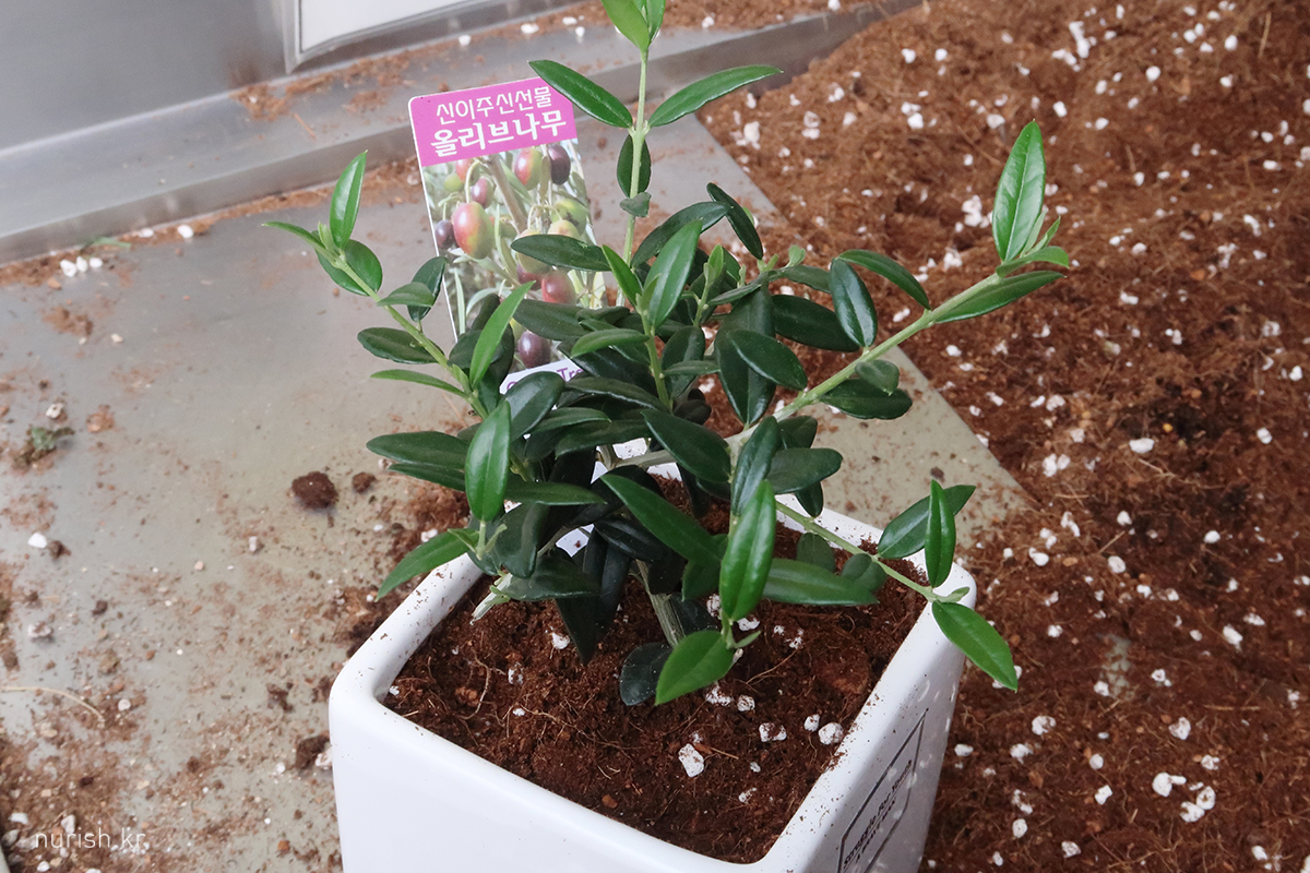 식물 사고 화분 사면 즉석에서 직접 분갈이도 가능하다. 애기 올리브나무 분갈이 중