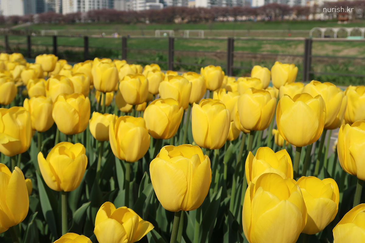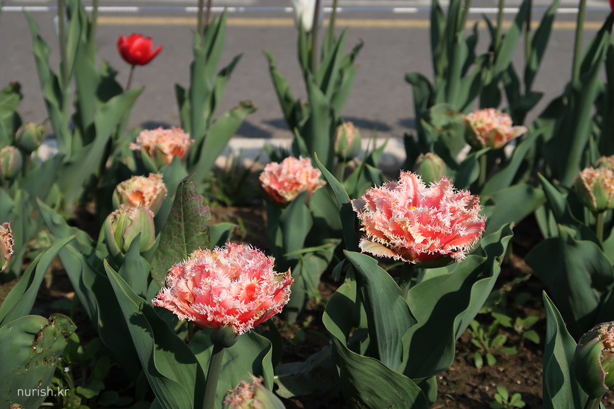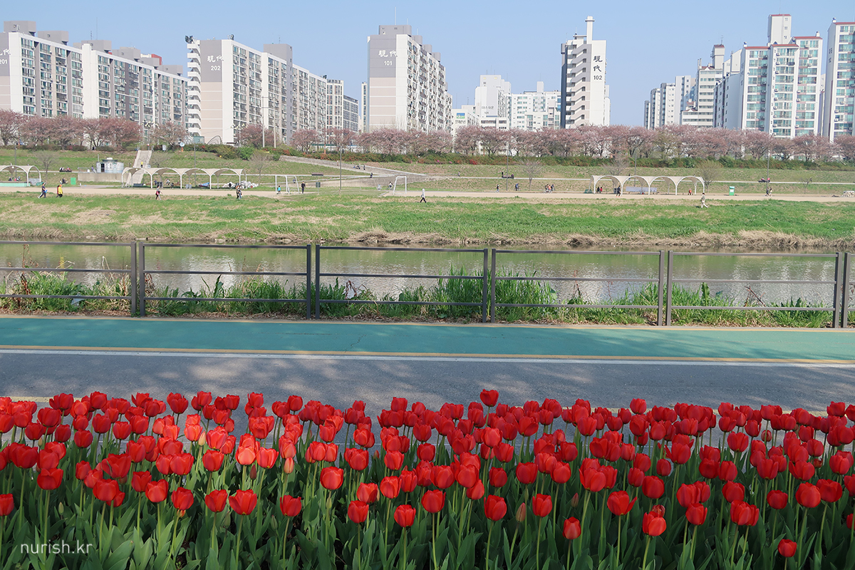 오목교 지나서 신정교 근처까지 왔는데, 이쪽에는 튤립이 한창이다.
