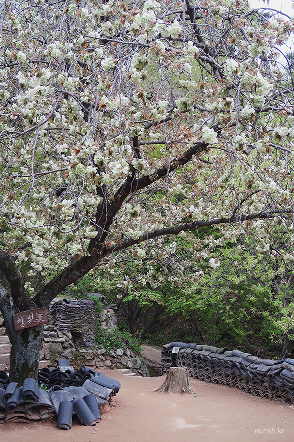 차에 올라타자마자 비가 한두 방울씩 떨어지기 시작했다. 다음에 날이 좋을 때는 아래 주차장에 차를 대고 돌길 따라 걸어 올라와도 좋겠다는 생각을 하며, 청벚꽃과 왕벚꽃을 뒤로하고 아쉽게 운전대를 잡는다.