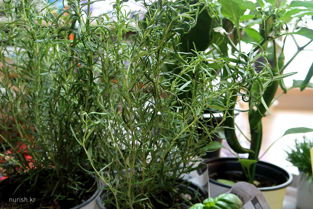 커피 나무, 고추, 상추, 로즈마리, 스위트바질