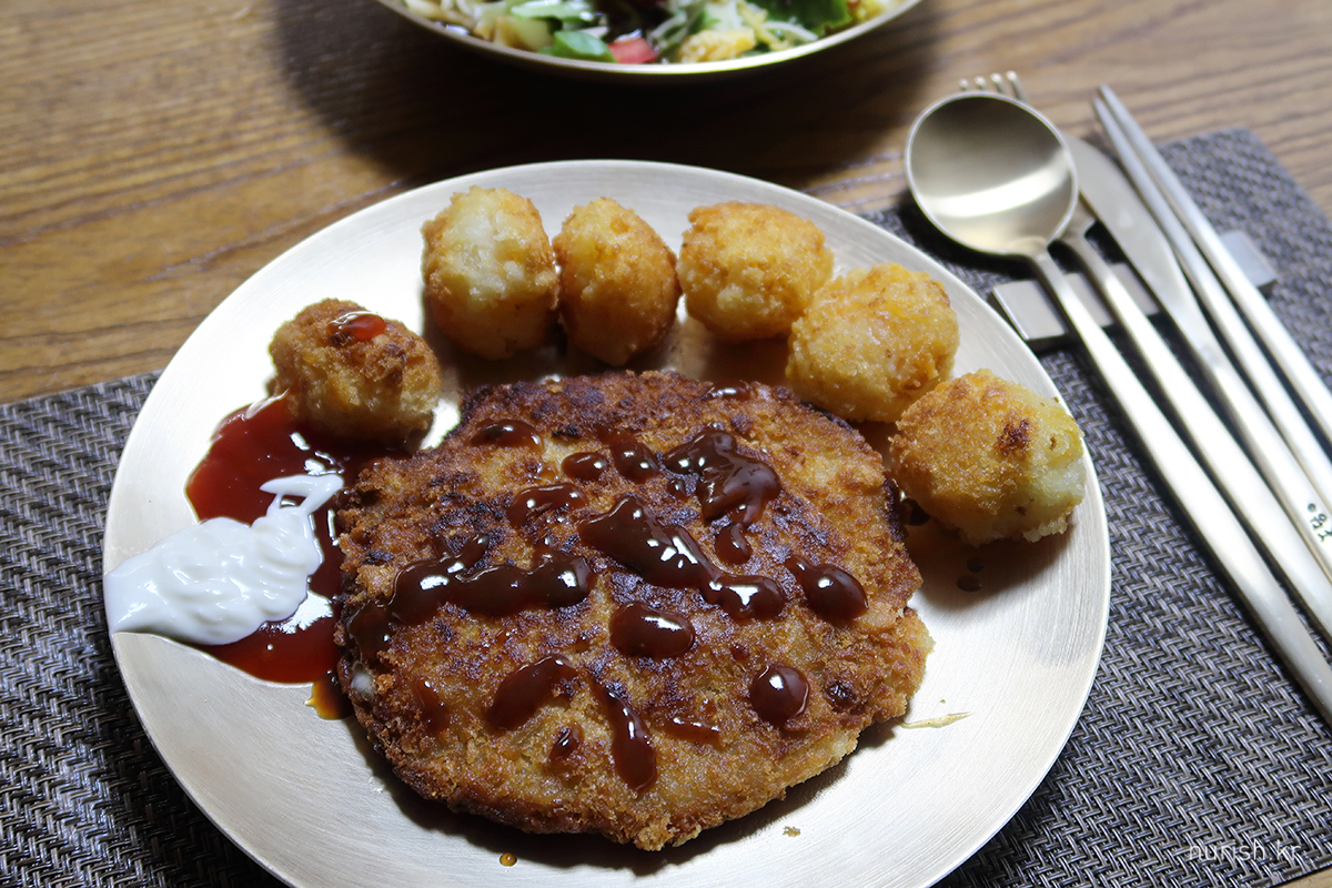 소스로 돈가스 위에 그림 그리려고 했는데 다 먹어서......X(