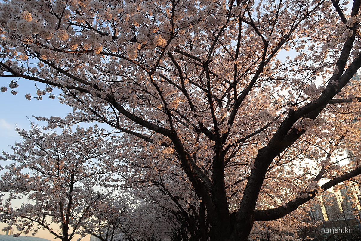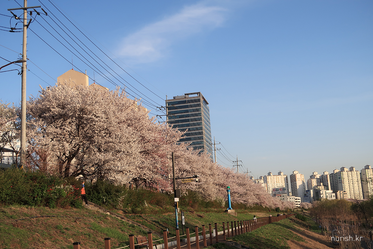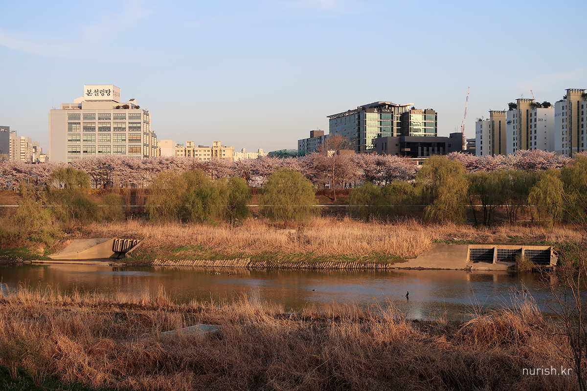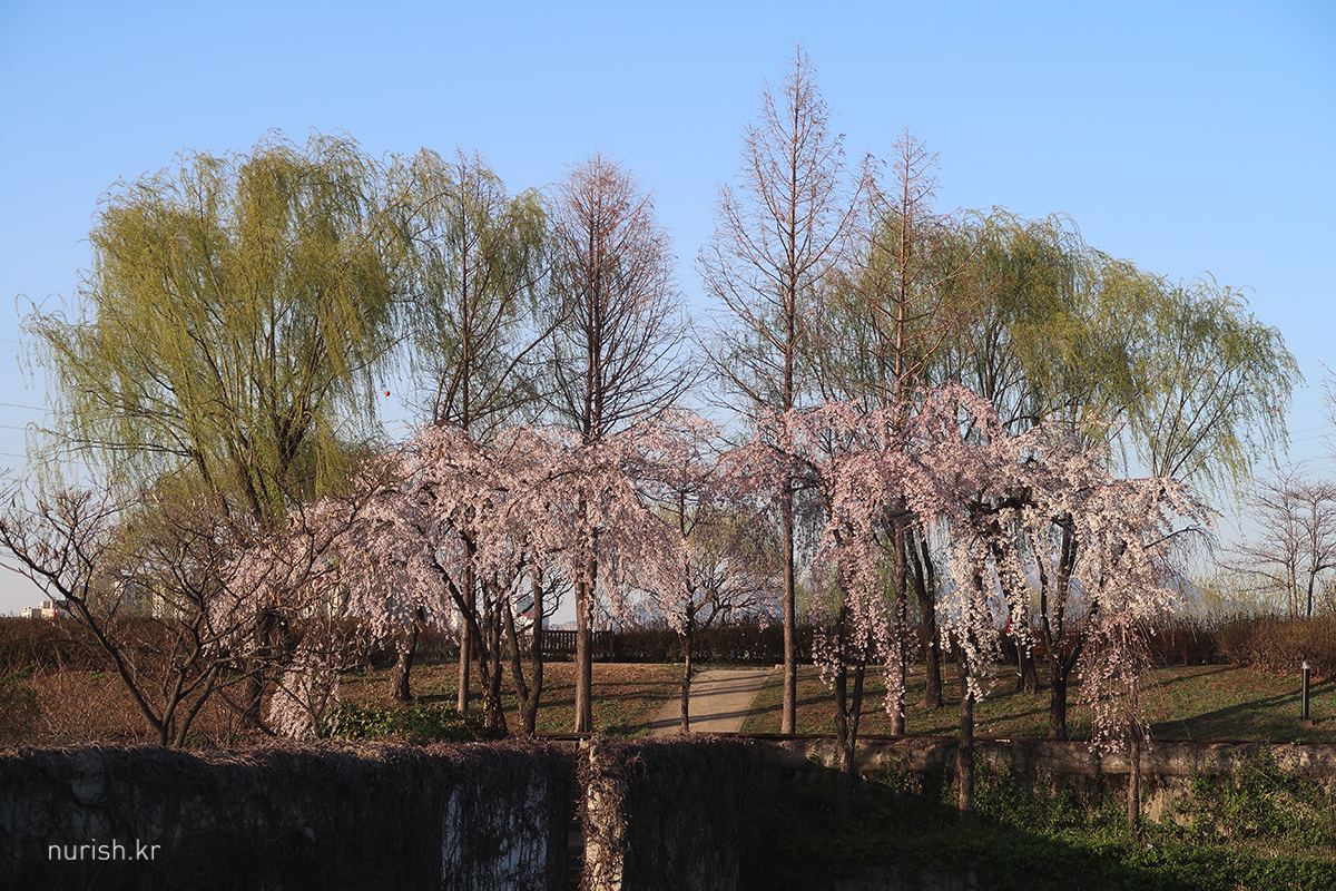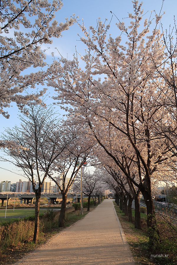 양천구 쪽 벚꽃길은 건너편에 비해 벚나무들이 아직 작다.