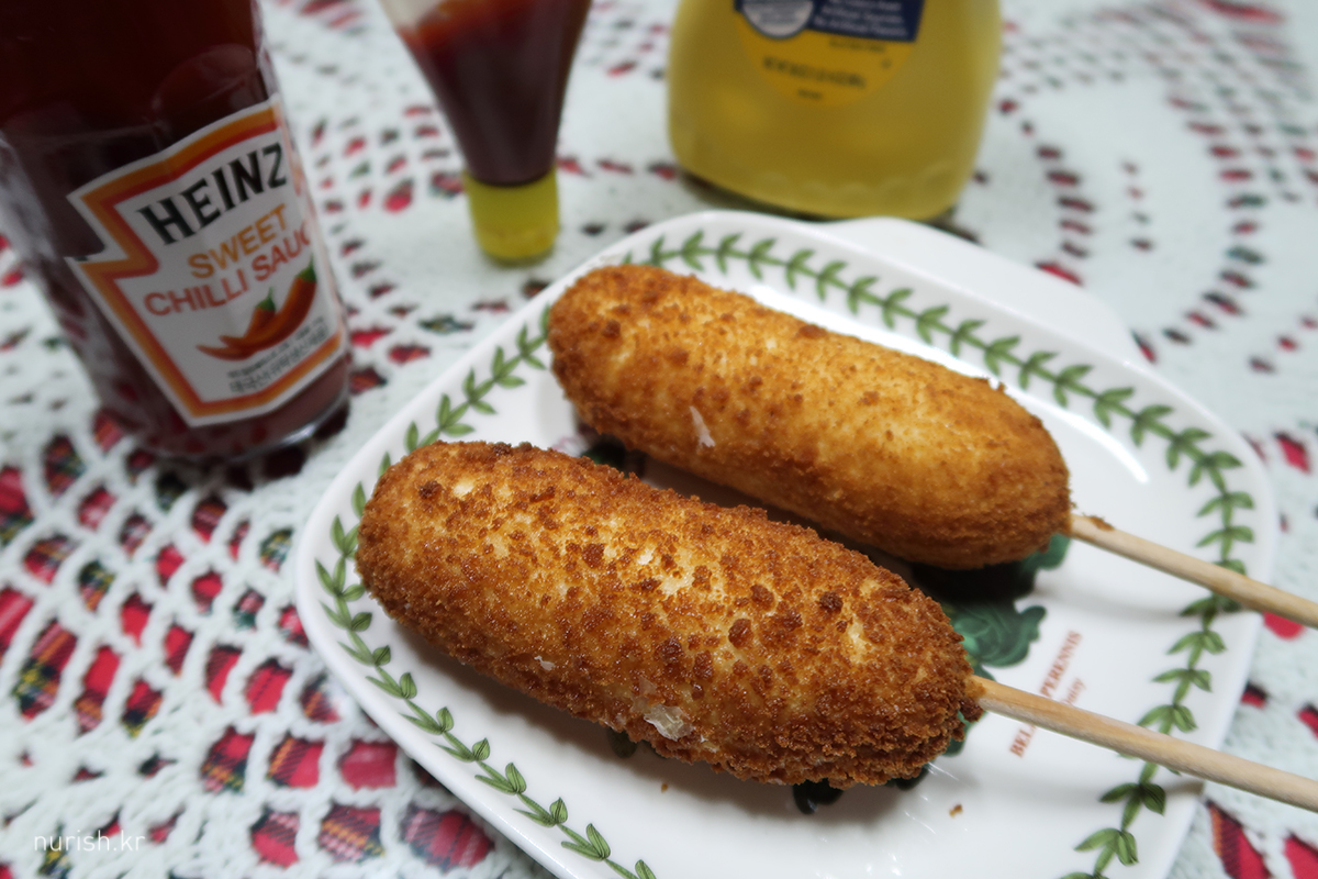 열심히 운동해 놓고ㅋㅋㅋㅋㅋ 휴 ㅋㅋ 얼마 전에 코스트코 갔다가 세일하길래 집어온 모짜렐라 핫도그인데 맛있다. 전자레인지에 살짝 데운 후 에어프라이기 돌리니까 겉이 바삭바삭해졌다.