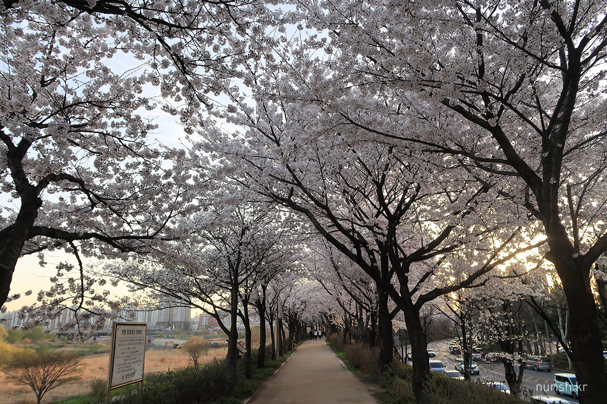 양천구 쪽 벚꽃길은 건너편에 비해 벚나무들이 아직 작다.