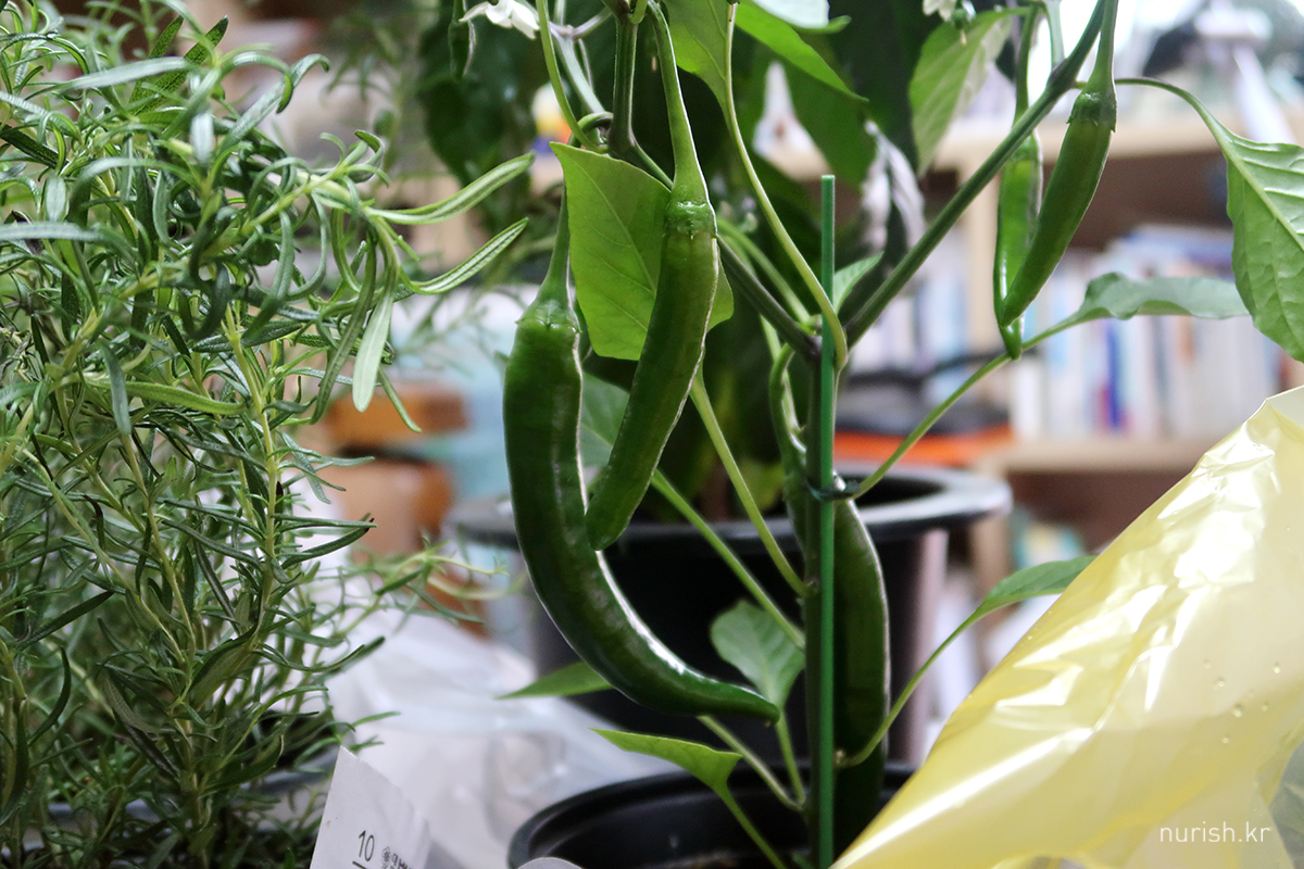 커피 나무, 고추, 상추, 로즈마리, 스위트바질