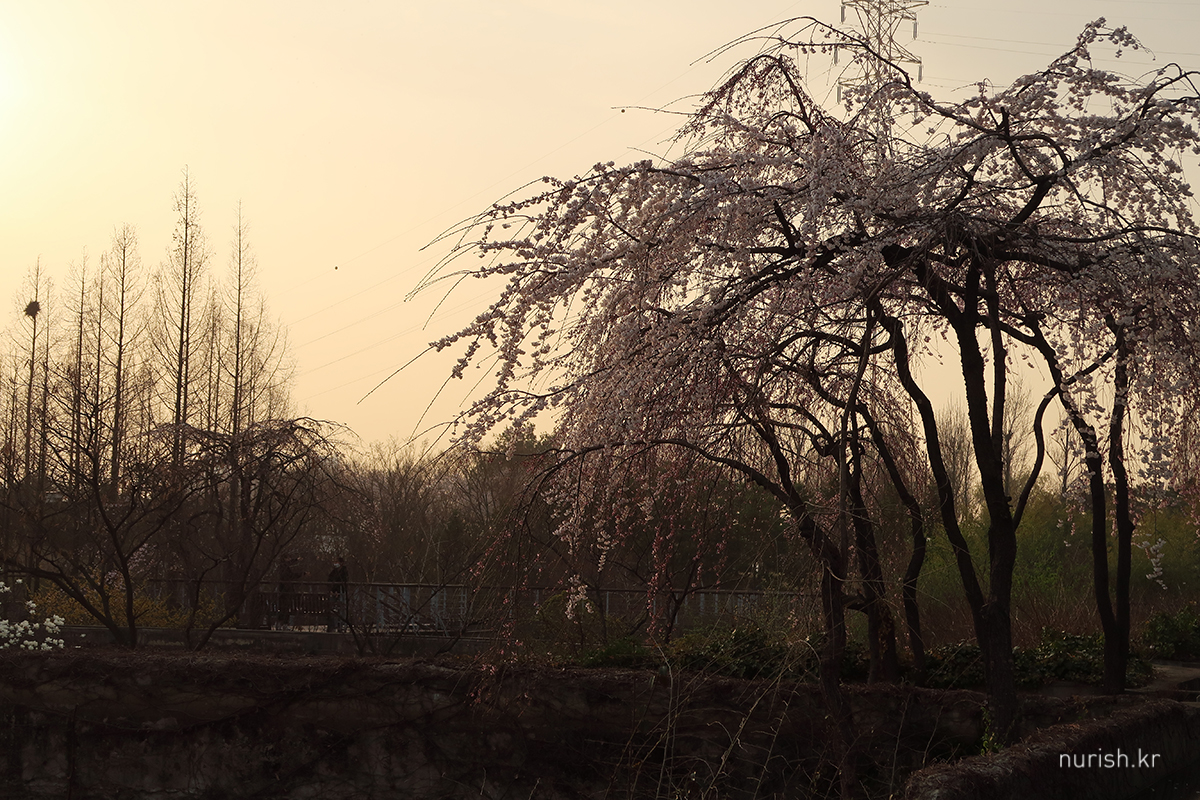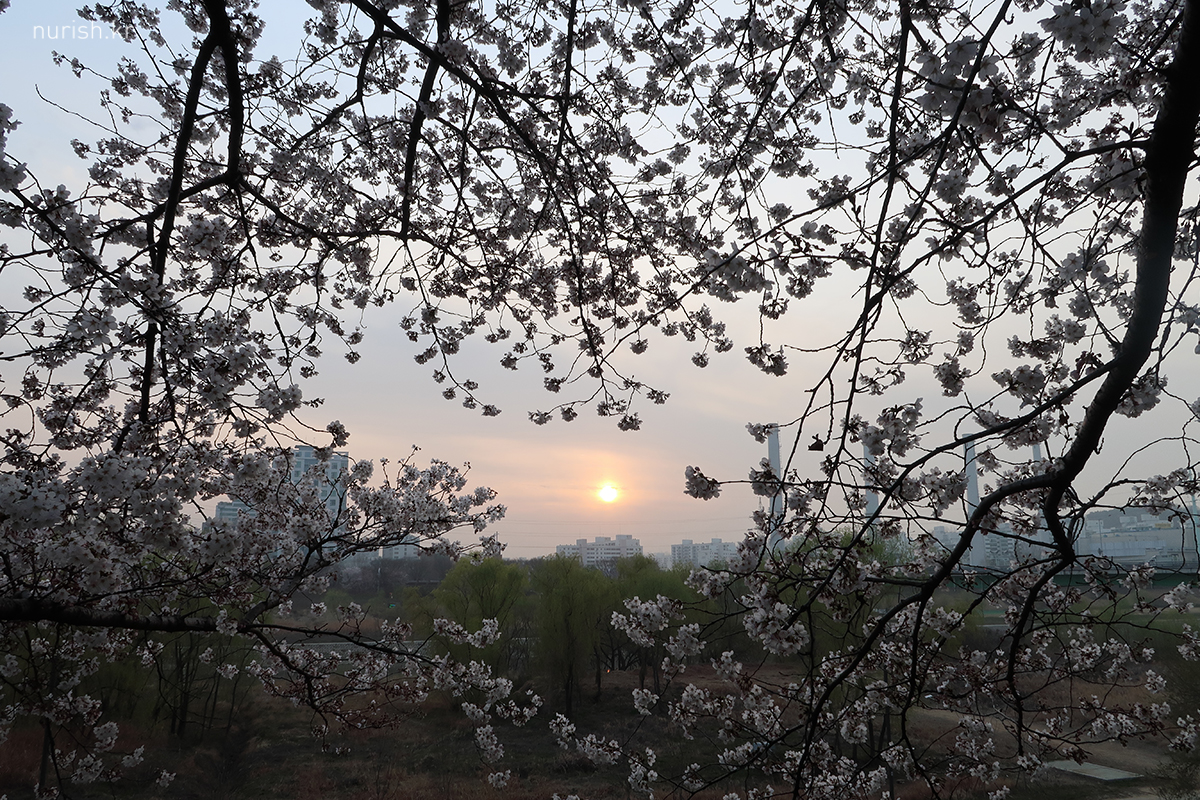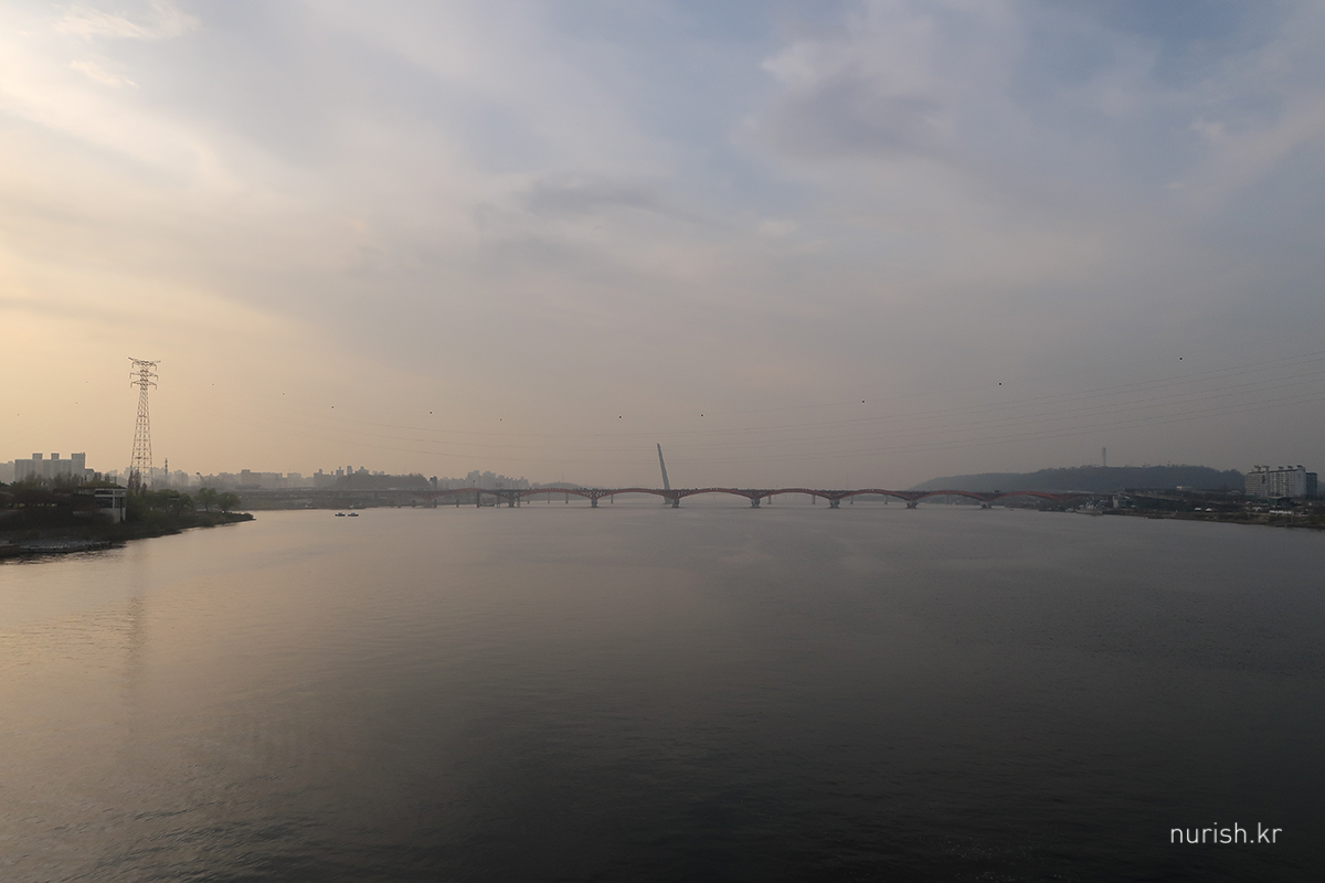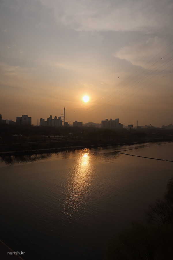 다섯 시 퇴근, 추운 겨울이 지나고 오랜만에 집에 걸어가는 길. 서쪽 하늘은 붉게 물드는 중인데 미세 먼지가....ㅠㅠㅠ