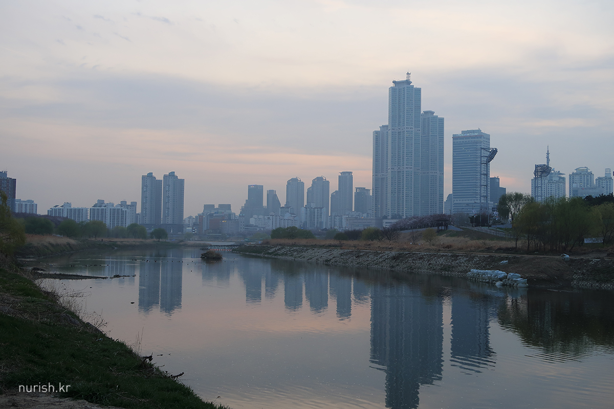 다섯 시 퇴근, 추운 겨울이 지나고 오랜만에 집에 걸어가는 길. 서쪽 하늘은 붉게 물드는 중인데 미세 먼지가....ㅠㅠㅠ