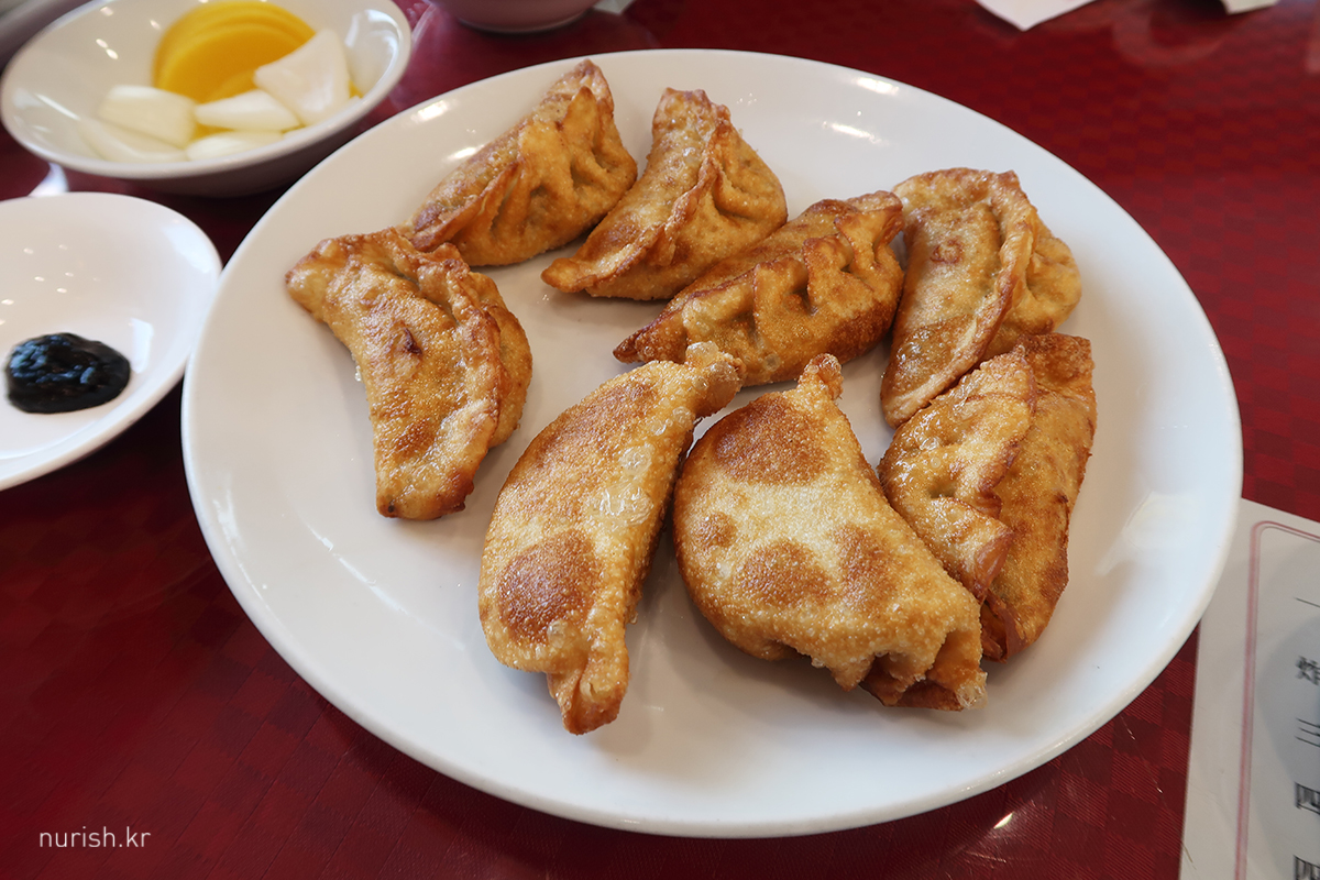 서울행 버스 타려면 저녁까지 먹을 수는 없어서 군만두까지 주문하여 배를 가득 채웠다. 돼지고기에 옥수수, 완두콩 등이 섞여 있던 독특한 군만두.