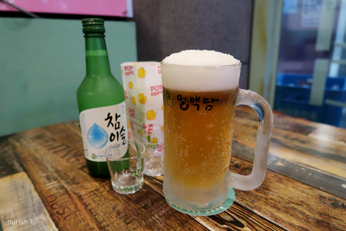 맥주칩이 수북히 쌓인 얼맥 신기쓰
