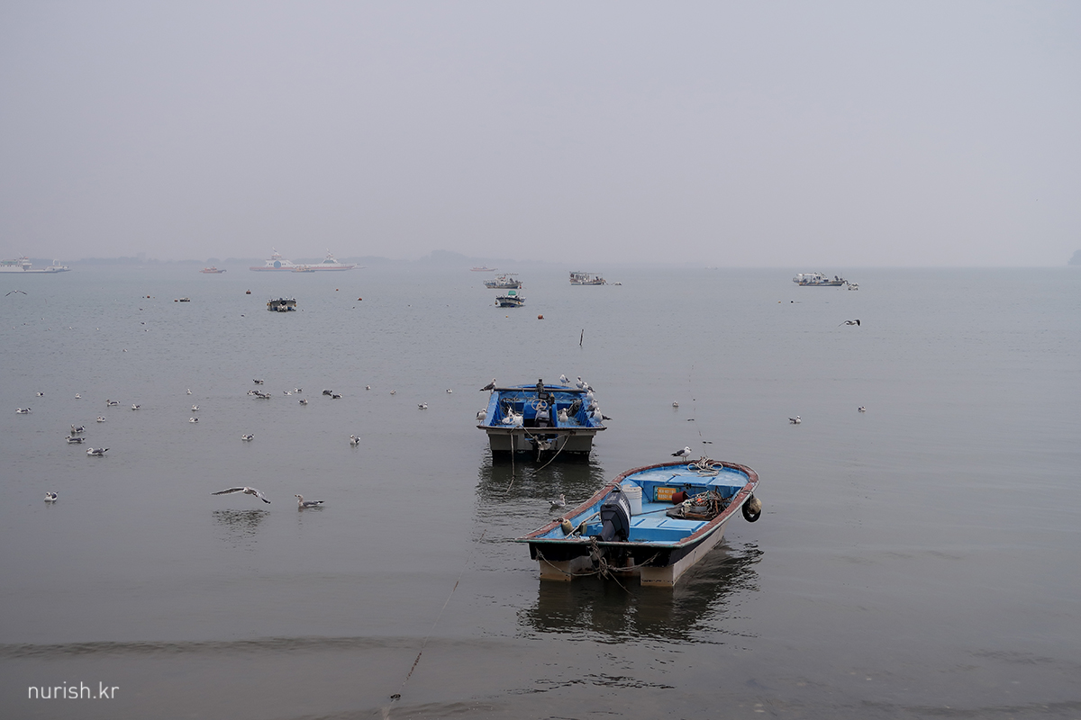 차 대놓고 잠시 바다 구경할 곳을 찾아 무의도로 들어와 봤는데.... 실패. 항구에서 해물 좌판 구경하면서 바다 사진 한 컷 찍고 다시 나간다.