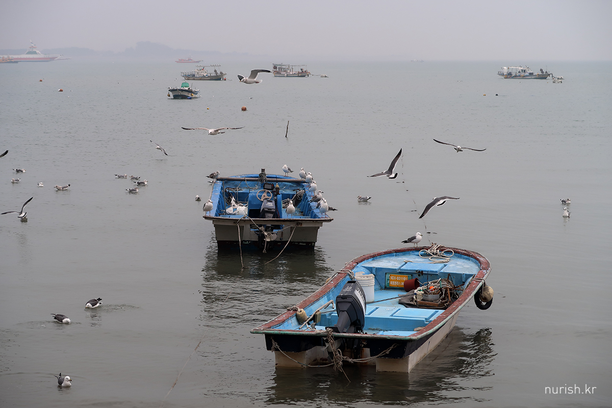 차 대놓고 잠시 바다 구경할 곳을 찾아 무의도로 들어와 봤는데.... 실패. 항구에서 해물 좌판 구경하면서 바다 사진 한 컷 찍고 다시 나간다.