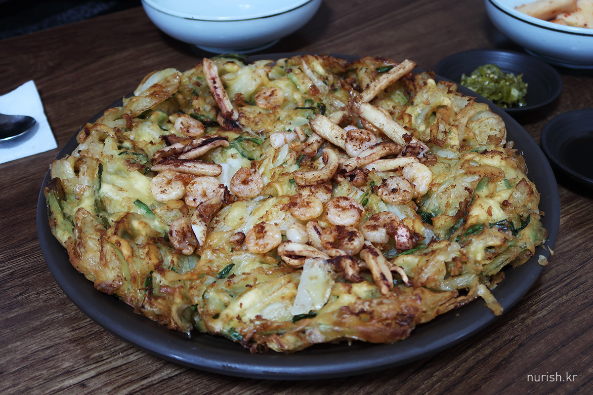 요즘 파값이 비싸서 그른가.. 파전이 아니라 양파전ㅠㅠ 오징어랑 새우가 많이 들어서 좋긴 했지만...
