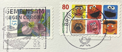 2020년 3월 2일 발행된 미국 어린이 프로그램 세사미 스트리트(Sesame Street) 우표.