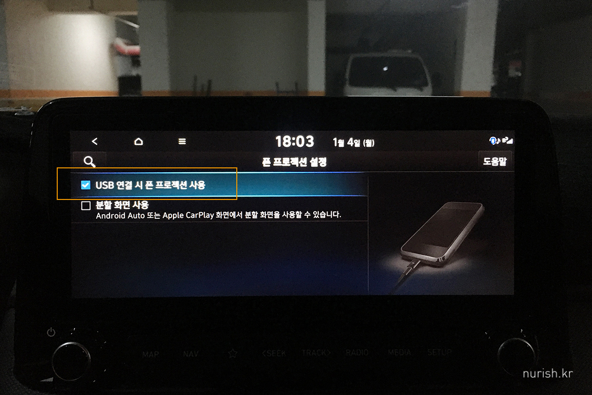 오랜 인터넷 검색 끝에 이유를 알았다. ㅠㅠ 업데이트하면서 제멋대로 폰 프로젝션 기능이 꺼진 것. 자동차 받을 때 기본 설정은 카마스터님이 다 해 주셔서 카플레이를 이용할 때도 이런 조작이 필요하다는 걸 몰랐네. 카플레이는 당연히 무조건 되는 줄 알았다.