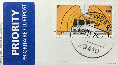 2020년 6월 10일 발행된 뮌헨(Münich) 마리엔 광장(Marienplatz)의 지하철 역을 형상화한 우표.