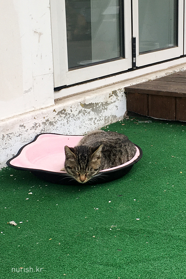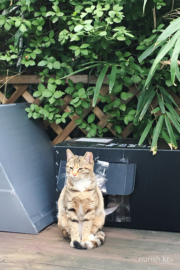 얌전히 앉아 있는 고양이 뒤로 발 하나 더 보이는 게 킬포 ㅠㅠㅠㅠㅠ 너무 귀엽다 진짜ㅠㅠㅠ