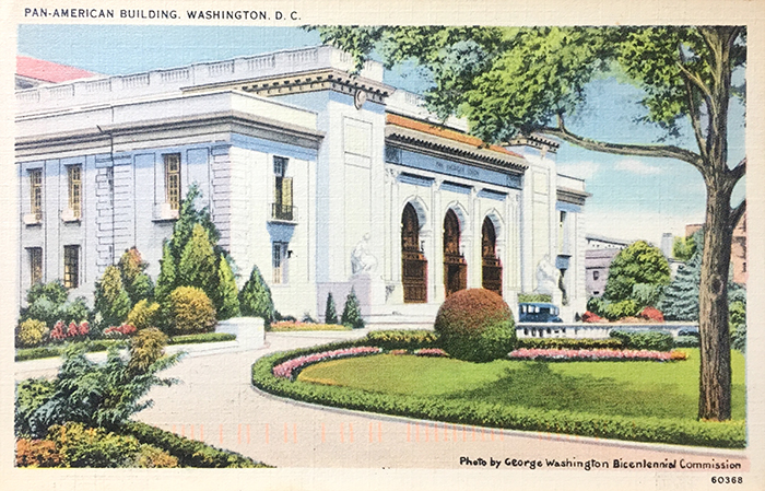미국 뉴욕에서 온 워싱턴DC의 팬아메리칸 빌딩 그림 엽서.