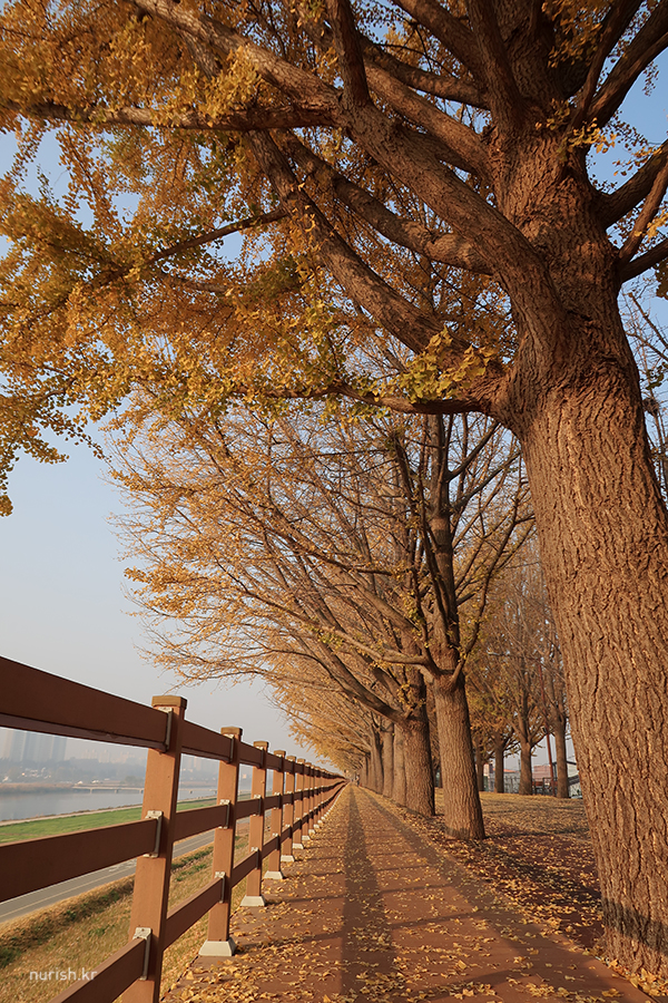 지중해마을에서 10분 정도 차 타고 가면 나오는 아산 곡교천 은행나무길.