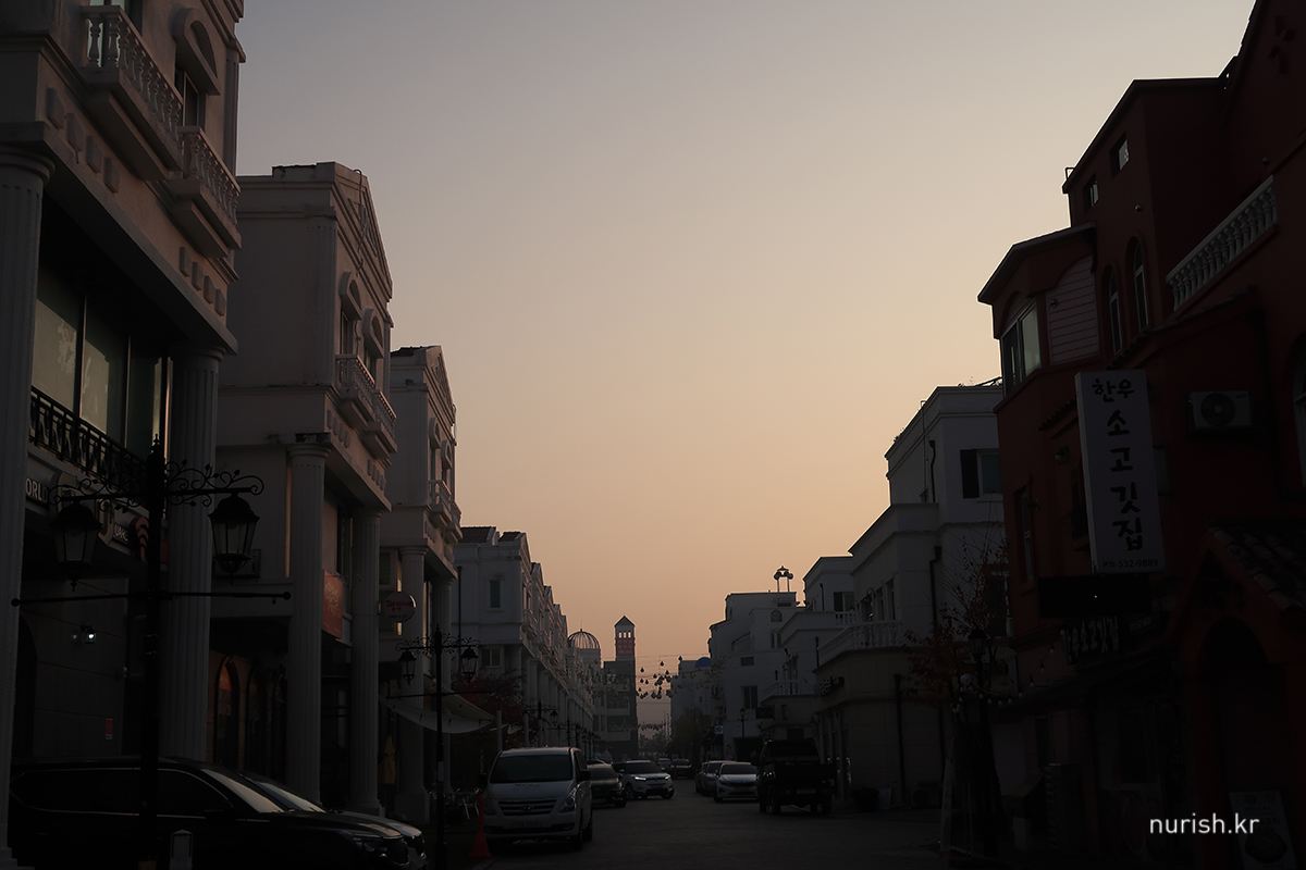 처음 지중해마을까지 왔는데 안 둘러볼 수는 없어서 한 바퀴 돌았다. 해가 뜨고 있다. 귀엽고 아기자기한 건물이 아주 많았다. 해 질 녘에 오면 조명 같은 게 켜져서 더 예쁠 것 같다.