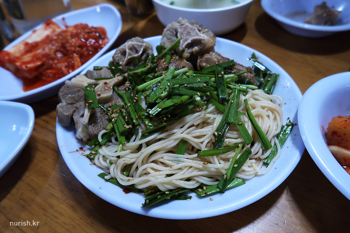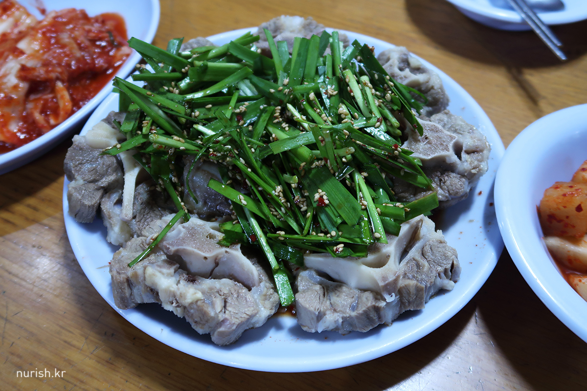 꼬리수육 아래 깔려 있는 양념이 아주 맛있다. 국수를 추가해서 양념에 비벼 먹으면 그게 또 별미다.